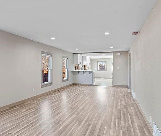 As you enter the home, you will be greeted by a covered and heated front porch, perfect for enjoying your morning coffee or relaxing in the evening. The interior of the home boasts brand new flooring, new cabinets and solid core doors, adding to its sleek and contemporary feel.