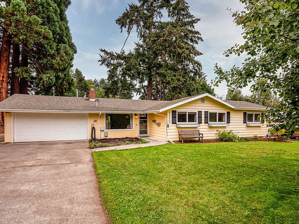 Mid-century, single-level Ranch on .63 acre lot quiet, established neighborhood, no HOA. 3 bed, 2.5 baths, 1835 sq. ft. with vaulted ceilings, exposed beams, soffits with recessed lighting, & skylights. French doors, original hardwood floors. Master bath has sliding doors to private, fenced area. Office space with private entrance; perfect for working from home or remote school.