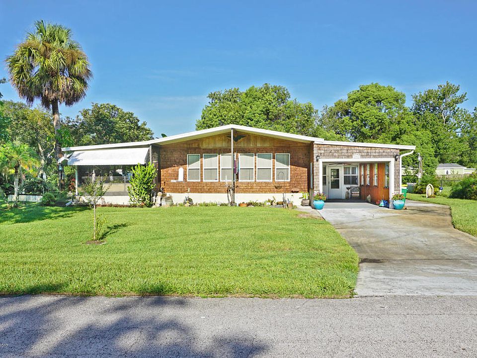 Lovely and spacious two bedroom home on an oversized corner lot! The owner of this home made customized udpates such as textured ceilings and walls, real wood floors, wood trim work both inside and out and custom wood kitchen cabinets. The master bedroom features a large closet and both bathrooms have been updated. There is a screened porch and a large florida room under air which is not counted in the living square footage. In this area you'll also find the stackable washer and dryer and all kitchen appliances stay. This home also has a one car garage and a fenced yard. So much to see and appreciate!