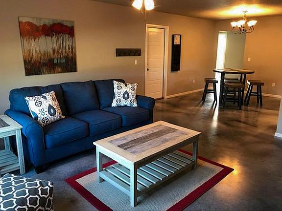 This beautiful and comfortable duplex offers 3 bedrooms and 2 bathrooms. With spacious closets in each room, it is perfect for your family's needs. Open-concept kitchen that includes the dining and living areas, which makes it perfect for entertaining. Gorgeous stained concrete floors all around. Features a pantry, as well as a 1 car garage and storm shelter. Close to shopping, restaurants, and just minutes away from the lake. This duplex won't last long! Tenant responsible for electric, water trash. Landlord mows the grass. Washer Dryer hookup is in the unit.