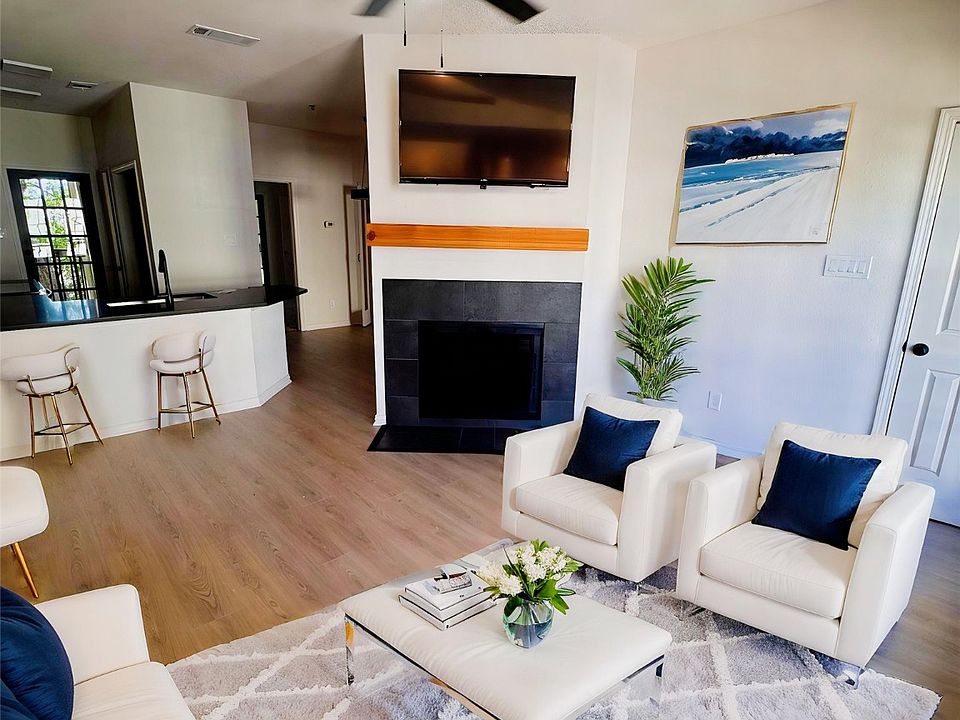 Wood burning fireplacePrivate balconySecond balconyResort style poolNew stainless steel appliancesVaulted ceilingsWalk in closet