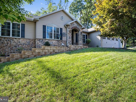 Crested at the foot of a mountain and snuggled in the backyard of Mountain Dale is a semi-private, raised stone ranch home with 6 bedrooms, 4 full baths & 2 full kitchens. Entering the door of the lower level you find a fully finished living area, 3 bedrooms, a full bath, an office, and laundry area. Two of the bedrooms and the office have separate customizing wall heaters. The third bedroom has a window seat with built-in storage just under the egress window. The lower level section could serve as a in-law suite, with a separate private entry. There is a full custom kitchen with a breakfast bar large enough to accommodate 5 bar stools. The kitchen features a GE Profile 5 burner cooktop, hood, double oven, and dishwasher. The lower level is heated with a Mt Vernon, Quadra-Fire pellet stove with a heating capacity up to 3000 sq ft. It feels nice and toasty on the cold winter days. The storage areas easily holds 2 to 3 tons of pellets. This home was custom built to accommodate others that could result into a stream of income if deemed necessary. It is perfect for accommodating guests while maintaining your very personal private space. The outdoor is nicely landscaped with a paver designer patio and walkway. The home requires minimal exterior maintenance due to the stone and vinyl siding as well as the composite decking. Entering the front door lends your eyes to 4 spacious areas to enjoy and feel at home. The flow of the home is wide open and inviting to all who enter. It is saturated with 5” Canadian red oak wood planks; 25 windows and 3 doors/entry ways that are draped with custom shutters and cathedral/vaulted ceilings. The 1st level affords 2 main bedroom suites with tray ceilings, one with a jetted jacuzzi tub and separate shower, and the other main bedroom has a walk-in bathtub/shower combo. There is also a cozy office/bedroom next to a 3rd common full bath in the hallway. The custom designer kitchen on the 1st level is brand new with all new GE Cafe appliances as well as plenty of counter space and storage. It was designed with a breakfast bar to sit and eat at while enjoying some you favorite TV programs. For the music lovers, the home is equipped with 8 zones of speakers inside and outside. A house full of speakers is a must for those who love music and want to exist in the sound. The home is wired with a Control 4 smart home system that gives you control over your home no matter where you are in the world using your various devices. The possibilities are endless to suit your needs in this home. It is wired for cameras, garage operations, door locks, music, etc. At the back of the 1st level is a patio room for dining, playing games or just enjoying the deer and the beauty that nature presents during the different seasons. The patio room has 2, 6-foot sliding doors that lead to an L-shaped composite deck. The door to the right leads to the front of the home via a paver walkway. The door to the left leads to your future hot tub ready custom paver patio with outdoor speakers, as well as a paver walkway which leads around to the front of the house. The deck, patio and walkways are all incorporated/designed to allow movement around the entire exterior of the home without having to walk on your well manicured lawn. Check out the beautiful sunroom which is just off the patio room. CHECK OUT THE ATTACHED VIRTUAL TOUR to get the best online feel of the home. Don't miss your opportunity to make this unique, move-in ready home YOURS!
