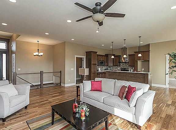 Don't miss this Royalty Homes Showplace! Completed and ready for occupancy. Great room plan. Wide open kitchen with granite countertops and stainless appliances. Huge eating area with sliders to an oversized deck. Half covered & half not. Master bedroom suite with awesome bath. First floor laundry. 2 additional bedrooms or bedroom/office combo. Fireplace and built-ins. Walkout lower level features huge family room with 2nd fireplace with more built-ins and beautiful wet bar. 2 huge bedrooms with full bath and a load of storage. Irrigation, central vac and a 4 car attached garage all on a 1/2 acre lot! Urbandale Schools.