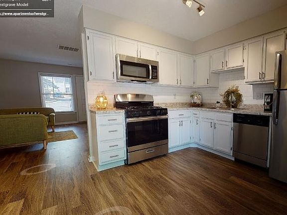Come visit Apartments of Westgrove and find your new home today! Our community offers inviting two and three bedroom apartments and townhomes. No matter which one you choose, you'll find spacious living areas, generous storage space, oversized laundry rooms with washer/dryer connections, and private patios that make your apartment a place you'll be excited to call home. Select units also include cozy wood-burning fireplaces! Newly renovated units will be available soon, offering faux-wood flooring, brand new lighting and plumbing, USB outlets in every room, fireplace mantels, framed bath mirrors, and large kitchens that feature subway tile backsplashes and stainless steel appliances! Apartments of Westgrove offers a beautiful, tree-lined setting as well as many amenities to make sure you enjoy your time here with us! Take a dip in our refreshing swimming pool with a large sundeck, play with your furry friend at our on-site dog park, or spend time with your family at our outdoor children's tot lot. For your convenience and enjoyment, we also offer off-street parking by permit, free package receiving with a delivery option, mail stations near your building, and neighborhood socials. Take a walkthrough video tour now, or call our friendly leasing staff today to schedule a personal tour of your new home!