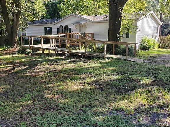 If serenity is what you desire, THIS IS THE PLACE! Need room for the kids to play outside? Ample room that is shaded and tree house ready. Large manufactured home includes a formal dining room as well as a separate utility room. Brand new roof just put on this year and a reverse osmosis system has been installed. This gorgeous oasis sits on 2.38 wooded acres and is fully fenced PLUS there is NO HOA. No need to worry about where to park your RV or all your toys with all this room. You are only 10 minutes from I-4 and other major thoroughfares. This is a growing area and close to all you need such as shopping, (new Publix) restaurants, and hospitals. A/C not currently working and flooring needs replaced.