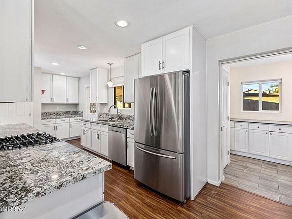 Beautifully updated central Tucson home featuring four bedrooms and two baths on a desirable corner lot! Inside you will find an updated kitchen with granite countertops, newer cabinets, and plenty of prep space that connects easily to the dining and living areas. Both bathrooms and flooring have been tastefully upgraded, and dual pane windows provide great natural light and energy efficiency. The backyard is designed for low maintenance and year round enjoyment with artificial turf, mature citrus trees, and inviting outdoor spaces perfect for relaxing or entertaining under the Tucson sun. Additional highlights include solar panels for energy savings and a prime central location close to shopping, restaurants, and parks. This home combines modern style, thoughtful updates, and convenience