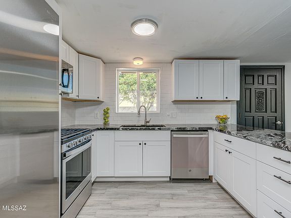 Fully renovated 4 bed/3 bath brick masonry home on a large corner lot. Featuring a new roof, new HVAC, and new water heater, this property is completely move-in ready. Brand new tile flooring, trim, interior and exterior paint, kitchen appliances, cabinets, granite countertops, and dual pane windows make this a totally hassle-free move. Invite friends and family over to enjoy the spacious kitchen and living areas--or host outside in the large fenced yard containing mature citrus trees and saguaros. Convenient central location close to shopping, Reid Park, DMAFB, and just a short drive to U of A and downtown Tucson. No HOA!