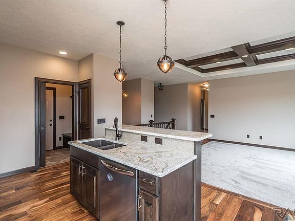 Image Homes has built it again!! An extremely stylish, functional ranch home on the growing East side of Sioux Falls! You are welcomed into this beautiful home with gorgeous acacia flooring throughout the main floor, stylish back splash against the granite counter tops in the kitchen, and a tall coffered ceiling in the living room. The master suite offers a large walk in tiled shower and a double vanity, a detailed step ceiling, and a huge walk in closet. The basement has a 9 foot ceiling and is ready for 2 more bedrooms, a bathroom, a wet bar & a fireplace in the family room. Garage has a drain and water hook up, and is all set up for a heater - just drop one in! Sioux Falls School District. Sod, rock, edging, & sprinkler system is already included!
