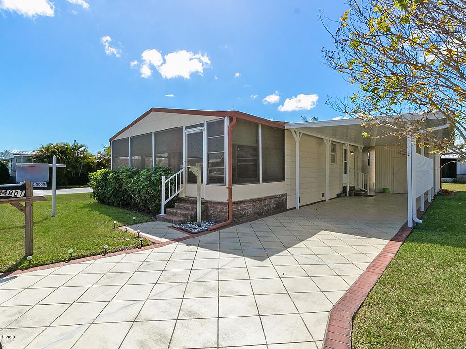 Enjoy all this 55+ community in Hollywood Estates in West Melbourne has to offer, from the community clubhouse, spacious pool, library, shuffleboard, and if you need a place to store your boat or RV. Many planned community activities to choose from include card games, bingo, pot luck dinners, holiday gatherings, and dancing. UPDATES INCLUDE Pergo laminate flooring throughout except bathrooms in 2017, Updated lighting & fans, Dishwasher, Range, Refrigerator, microwave in 2018, washer & dryer in 2018, newer hot water heater, newer toilets, newer vanities/countertops in the bathrooms. The carport was added in 2017. The roof is from 2004. This is a very well-maintained and clean home! The HOA involuntary at $20 yearly, and the monthly Community fee are $106.09. Fantastic Location!