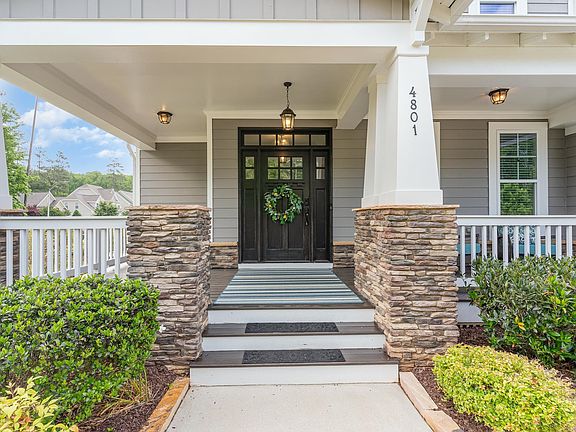 Fantastic opportunity to live in desirable Brighton Forest. Spacious rocking chair front porch welcomes you home to comfortable functional living. Step onto site finished hardwood flooring & into the living room with cozy fireplace. Kitchen offers white cabinets, granite, tile backsplash, SS appliances, & walk-in pantry. Dine at the bi-level island, casual breakfast area or formal dining room with coffered ceiling. First floor guest suite perfect for visitors. Upstairs you'll find your spacious primary suite with tray ceiling, luxurious soaking tub, dual vanities, tile surround shower, & vast walk-in closet. Second floor includes two additional bedrooms, sharable bathroom, laundry with cabinetry, & bonus room. Third floor gives a versatile space for 5th bedroom or additional bonus area, including full bath, extended closet, & walk-in attic. Living continues outdoors as well. Screened porch provides relaxing view of the landscaped fenced yard. Unwind in the hot tub, or gather with friends around the wood burning fire pit. Don't miss the neighborhood playground & pool with slide. Welcome Home!
