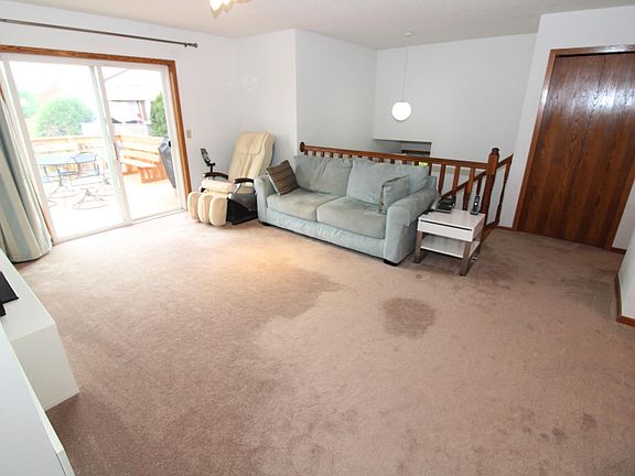 Welcome to a well maintained Twin home. Main level: entry, living room and slider to the deck (both wood benches stay), kitchen, dining area off kitchen (kitchen and dining area has ceramic tile floor), main full bath, and two bedrooms. Lower level: utility room, full bath, two bedrooms, family room and slider to the patio (picnic table stays). Both bathrooms have ceramic floors. All appliances stay. Attached 2 car garage. Shed. Sand volley ball court.
