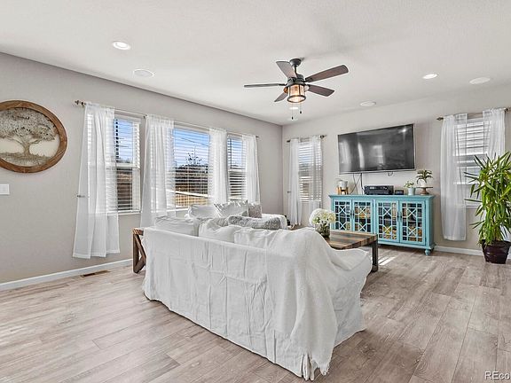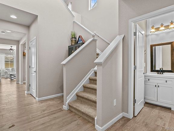 "Alexa, find me a home in Castle Rock." Smart & Energy Efficient home connected to Alexa and other Smart apps is ready for you! No upgrades were missed when the owners built this home a short 3 years ago. The main level features a nice, bright and open floor plan. Engineered, waterproof, wood floors throughout. Upgraded finishes in the kitchen include a backsplash, shiplap bar, granite counters, upgraded Smart lighting, high-end hardware and all Smart appliance including the double oven. On the main level you will also find the Home Office and the custom built-in Mud Room. The Powder Room on the main floor has also been nicely updated. Upstairs you will find the spacious loft with lots of windows and natural lighting with glimpses of the Rocky Mountains. Next, you will find the Master Bedroom with the En-Suite 5 Piece Bathroom, two more rooms and a full bath. The Laundry Room has just been re-done with new built-in shelving. Fully landscaped Front and Backyard. Freshly poured concrete patio which includes a full walk-way that leads to the front of the home. Pet-friendly turf, new trees, high fences for added privacy and better yet, the home backs to open space. No neighbors behind you! Enjoy being steps away from open space and multiple walking trails. Take advantage of the two Community pools and a very active Clubhouse. Parks are everywhere, including dog parks! So much to do and see. Come see for yourself.