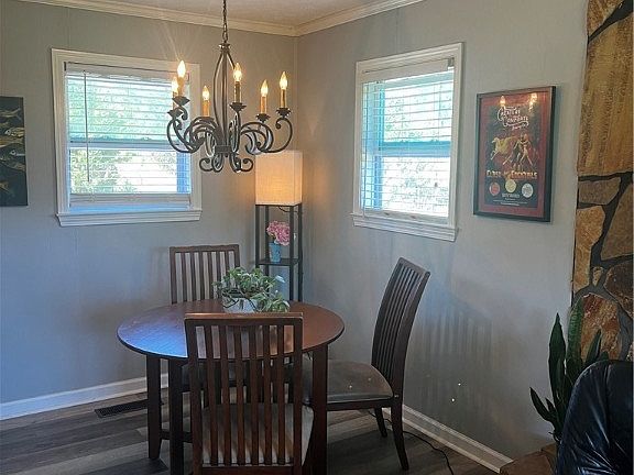 Inside has recently had some updates. Metal roof. New HVAC duct work added in 2019. Heat pump replaced in 2021. New Hot water heater. Very nice patio out back! Sits back off High Shoals Rd.
