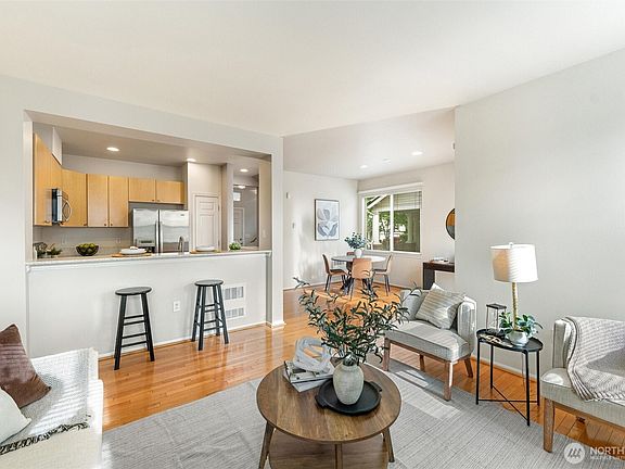 Cozy corner-unit townhome in the heart of Renton! This spacious 2-bedroom + loft, 3-bathroom home features vaulted ceilings and a bright, open layout. The living room centers around a gas fireplace, creating a warm and inviting atmosphere. Enjoy cooking in the updated gourmet kitchen with ample cabinetry, a gas range, and an eat-in bar. Upstairs, the generous primary suite offers a large walk-in closet. Located in a well-maintained community with secure gated entry, a clubhouse, sports court, and walking trails. Just minutes from The Landing with easy access to I-405 and Hwy 167 for a smooth commute. No rental cap and low HOA dues make this a smart investment or a perfect place to call home!