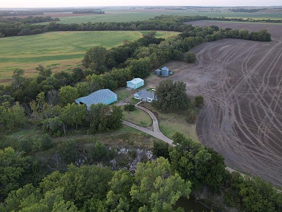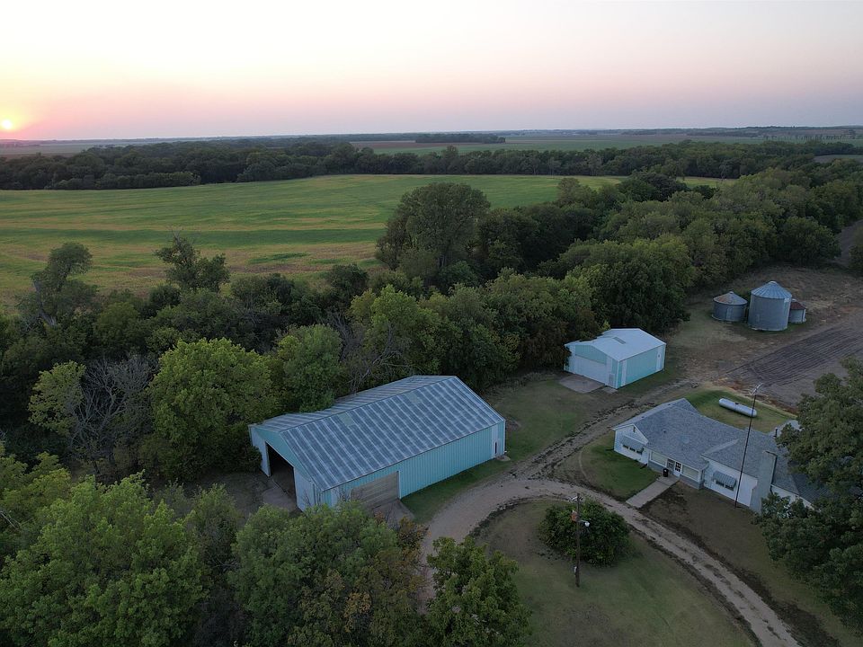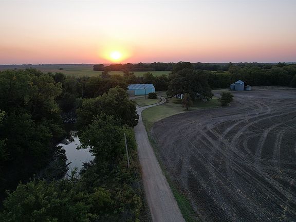Enjoy Kansas sunrises and quiet country living on this property north of Salina, Kansas. This 4 bedroom, 2 bathroom home sits on approximately 7 acres +/- and has Saline River frontage on the south and west sides of the property. The home consists of roughly 1,700 square feet with a large living room, fireplace, attached one car garage and spacious bedrooms. There are two outbuildings on this property, the south building is 72’ x 54’ and the north building is 30’ x 36’. The house is just a short two-minute drive to interstate 35 and seven miles from the city limits of Salina. The home is serviced by rural water. The entirety of this property lies in the floodway and features gravel road frontage.