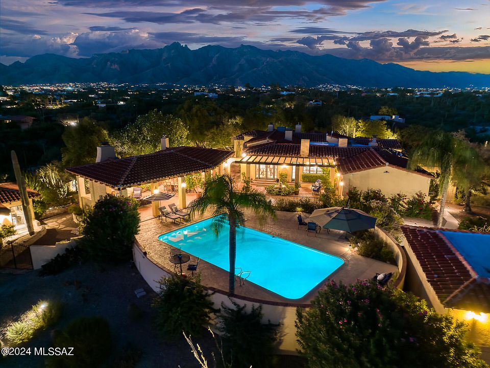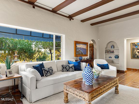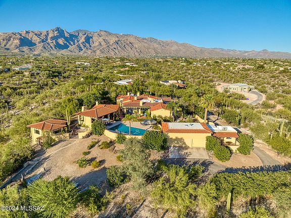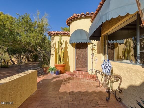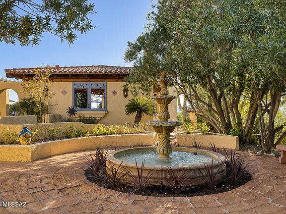 Welcome to ''El Castillo'', an architectural masterpiece designed by the renowned Josias Joesler, nestled in the prestigious Catalina Foothills. This privately gated, hilltop estate blends timeless elegance with modern comfort, offering nearly 5,000 square feet of luxurious living space. The main residence features three bedrooms and two and a half baths, complete with an updated gourmet kitchen and beautifully renovated bathrooms. In addition to the main house, the property includes an attached casita with a private ensuite bath, providing the perfect space for guests. There is also a fully remodeled, detached two-room guesthouse equipped with a kitchenette and full bath, offering visitors the finest in comfort and privacy. A heated and cooled office, exercise room, or (continued) art studio gives you a flexible space for work or leisure. Outside, the estate is surrounded by expansive, manicured gardens with desert landscaping and four tranquil fountains that add to the serene ambiance. Multiple patios are designed for year-round enjoyment, offering breathtaking views of the mountains and city lights. The highlight of the outdoor space is the over 1,100-square-foot ramada, complete with a fireplace, large dining and living areas, and a full outdoor kitchen with multiple cooking stations, including a built-in pizza oven. The resort-style pool has been recently refinished with Pebble-Tec, new tile, and upgraded equipment, including a hybrid electric and gas heater. The estate has undergone many modern updates, including a new septic system, new water lines, and an upgraded electrical service that has been enhanced from 200 to 400 amps. The oversized three-car garage provides ample storage space. Set in a magical and private location, El Castillo offers a rare combination of historic charm, modern amenities, and spectacular views. This luxurious estate is an extraordinary opportunity to experience the best of Tucson living.