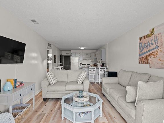 Experience coastal living at its finest with this beautifully upgraded 2-bedroom, 1.5-bathroom OCEAN VIEW, fully furnished condo in the desirable Cherry Grove area. Enjoy stunning ocean views from your private balcony, where you can relax and soak in the serene surroundings. Step inside to discover a bright, open floor plan that seamlessly connects the living, dining, and kitchen areas. The kitchen features brand-new appliances and sleek countertops that offer both style and functionality. This condo has been meticulously updated with new paint throughout, adding a fresh and inviting ambiance. You'll also appreciate the new light fixtures, fresh trim, and a stylish vanity in the half bath. The new luxury vinyl plank (LVP) flooring throughout the main areas adds a touch of elegance and durability. Marsh Villas enhances your living experience with convenient on-site laundry facilities and a beautiful pool, perfect for cooling off and enjoying sunny days with family and friends. Plus, you're just steps away from the sand, making beach days effortlessly accessible. Furnished with brand-new pieces, this condo is move-in ready and ideal for a vacation rental, second home, or permanent residence. Located just minutes from Main Street in North Myrtle Beach, you'll have easy access to some of the best shopping, dining, and entertainment the area has to offer. Embrace the paradise lifestyle in this delightful ocean view condo, where comfort and convenience meet. Don’t miss the chance to make this your own slice of paradise!