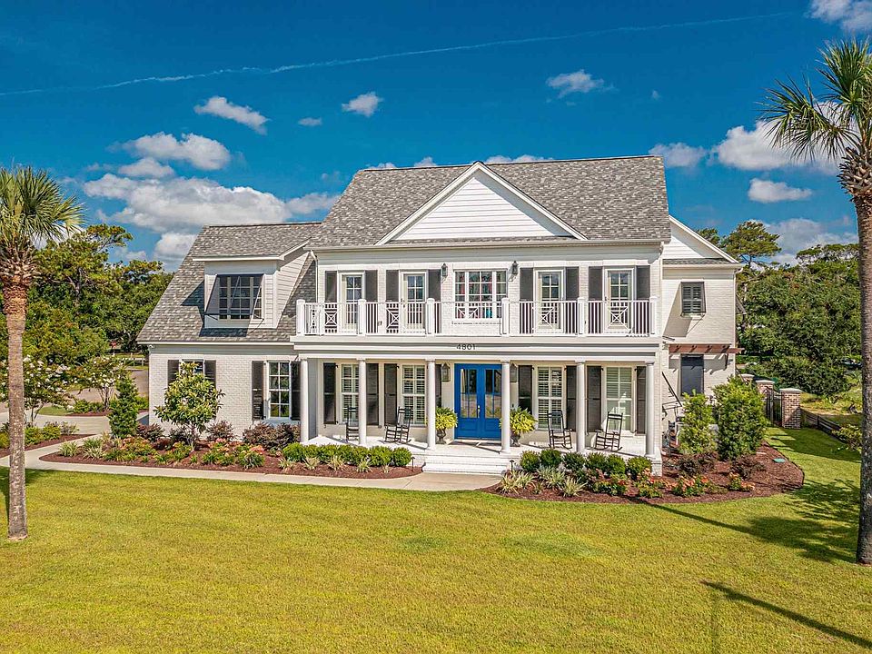 Amid a canopied oasis, Resort-Like bliss awaits you from this Second Row Beach home on the Golden Mile section in Myrtle Beach, SC. Constructed in 2017 with a recent 2100 sq ft addition in 2020, this exquisitely crafted estate pays the utmost attention to elegance and comfort while employing the finest materials and craftsmanship. During construction the owners took great care to preserve the beautiful mature live oaks that grace the property. The magnificent corner lot setting between Ocean Blvd and famed Burchap Drive encompasses 0.7 acres providing views of the ocean, a massive fenced yard with pool and spa, and meticulously designed landscaping. A delight for you and your guests for years to come. 6 bedrooms, 5 baths, and 2 half-baths with over 6200 sq ft extend across two spacious levels, exuding sophistication in every detail. Through a dramatic double door entry one finds an inviting foyer showcasing the homes 10-ft high ceilings, luminous windows with plantation shutters, and opulent staircase with wainscoting. Hand distressed hardwood flooring has recently been installed on both levels. The formal dining room at the front of the home leads to an open chefs kitchen and great room. A substantial waterfall edge marble island with seating is the focal point of the kitchen, elegantly complemented by upgraded stained cabinetry with gorgeous custom hood, Thermador built-in, pantry, and breakfast nook overlooking the rear courtyard. The elegant great room is a fantastic space to enjoy conversation or the warmth of the fireplace. The new addition offers a palatial owners suite at the rear of the home for the utmost privacy. The grandiose bedroom offers ornate floor to ceiling wainscoting with heavy molding, fireplace, and private access to courtyard. The zen inducing spa-like bath offers a walk-in-shower with body jets, gilded clawfoot tub, Calacatta marble vanities, and dual walk-in-closets. A new spacious laundry room also supports the home. Just upstairs an enormous multi-use room with fantastic open beamed vaulted ceiling and full bath is engineered for gym equipment while offering space for a home theater. Outdoors, the extensive rear paved courtyard flows under a canopy of live oaks. A patio beneath a pergola wrapped in jasmine provides an idyllic setting for dining in the ocean breeze. Abundant outdoor lounging extends to the lanai. The lanai features tongue and groove paneling, vaulted ceiling with exposed beams, beautiful brick fireplace, leathered granite island with seating, and Blaze grill with stainless hood. Two quad sliding doors and Eze-Breeze oversized windows allow seamless transition to the pool area. The natural gas heated 16 ft x 32 ft salt water gunite pool features a 6 ft x 12 ft splash section and a new 8 ft x 16 ft Badu swim jet spa. A striking outdoor powder bath completes the addition. Back inside, the original second level with 9 ft ceilings features 4 bedrooms and 3 baths. The second owners suite features a large bedroom with porch access, bath with marble floors, custom marble shower with dual heads, a freestanding rectangular tub, and walk-in-closet. Two other large bedrooms share a full bath. An oversized flex room with full bath provides numerous options. Additional home features include a Generac whole home generator, new hurricane shutters, dual Rinnai tankless water heaters, Sonos in-wall speakers, separate meter irrigation, and new wrought iron fencing with stately brick pillars. Disappear into your own tranquil enclave with every amenity desired. This home represents the ideal package of location, luxury, and quality so rarely found today.