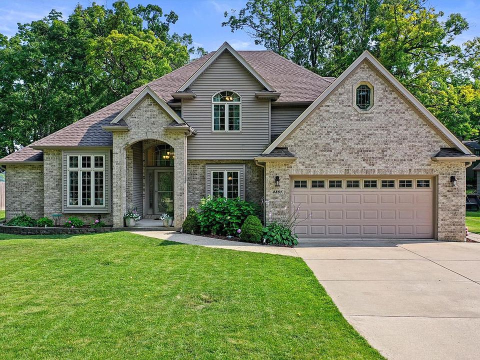 This beautiful home set back on .55 acres has it all + it's in the GIFFORD district!!! NO HOA!! As you enter you are welcomed by a beautiful family room with vaulted ceilings and a wall of windows that over look the gorgeous wooded lot. The family room opens up to a beautiful kitchen featuring granite countertops and HWF. Main floor master suite features walk-in ceramic shower, skylight, WIC, double tray ceiling, double sinks, quartz counters, soaking tub. Den/office, laundry, and dining room round out the 1st floor. 3 nice sized BR and full bath complete the upper level of the home. The basement is complete with wet bar, granite, full bath and is perfect for entertaining. New tear off roof 2016. 6 panel doors. Great home that checks all the boxes!