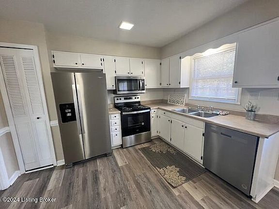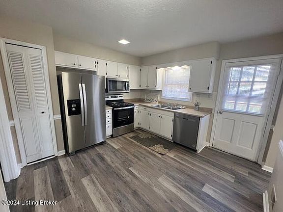 *****REDUCED**** Fabulous location in Jeffersontown! BRAND NEW STAINLESS STEEL APPLIANCE PACKAGE JUST INSTALLED! *** 3 Bedroom, 2.5 bath. Fresh paint. New flooring throughout. Eat-in kitchen and a formal dining room. Good sized living room. Primary bedroom has it's own remodeled bathroom. Basement has a family room w/fireplace, 1/2 bath and and laundry room. Deck and 2 car garage with side entry. Good sized yard. Updates include **New roof and gutters 10/2021**New garage doors 2/2024 **New driveway 2024**New flooring throughout 2024**Newly updated primary bathroom 2024**