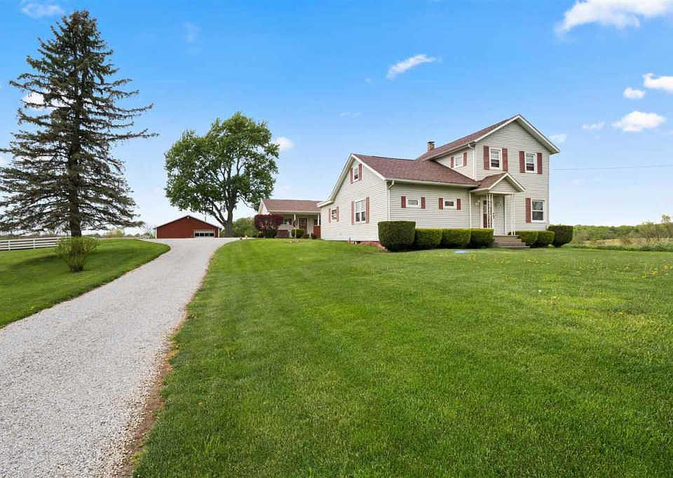Quiet country living abounds on this 5 acre property that includes a 3 bedroom & 2 full bath home, a detached garage, a barn, a shop building, plus scenic views of farmland and a neighboring pond. This charming home offers an eat-in kitchen designed for easy meal prep with plenty of countertop space, beautiful cabinetry, a window over the sink, plus all appliances remain. The living room & adjacent family room gives flexibility to this floor plan; ideal for entertaining or family gatherings. Desirable main floor bedroom plus 2 additional bedrooms upstairs. A finished upstairs bonus room, currently used as an extra bedroom (no closet), is ideal for a play/study room, den or a home office. Additional details & updates include a handy backdoor entry hall & laundry area, ceiling fans, partial unfinished basement, backyard deck, a grape arbor, new roof 2013, new furnace 2010, septic new 2005, water softener 2005, plus newer windows. The 2 car detached garage has a convenient service door and a full length covered porch just right for quiet evenings. Generator in garage that can power house will stay. Perfect for a home business or car enthusiast, the expansive 30x40 outbuilding has 10 ft. doors on either end, plus a 15x40 shop building is equipped with 100 amp service & a grease pit to work on cars. Air compressor and lines will stay. This tranquil setting is located between Warsaw & Columbia City (20 minute drive) and the town of Pierceton offers nearby schools, dining, a library, and multiple parks. This home qualifies for a USDA loan.