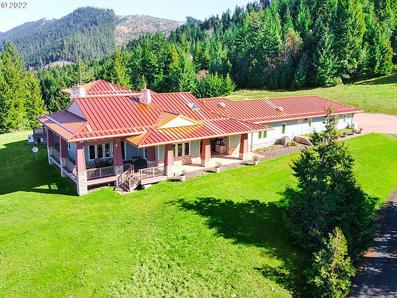 Enjoy the comforts of this luxury craftsman home situated in the middle of 160 secluded acres only 30 minutes from Roseburg, OR and I-5. With propane and diesel backup systems, this sun and wind powered home insures quality living separated from the worries of the world. Including 1100 Filbert trees, a fenced orchard, shop, swim spa and 1416 Sq Ft yurt, this property has several quality amenities which are too many to list.