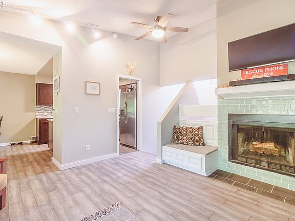 Private, tucked away townhouse style condo- Incredible location! End unit condo backs to trees & greenspace & is walkable to Multnomah Village! Across the street from Gabriel Park & SW Community Swim Center. Updated private deck that looks out onto greenspace & Vermont Creek and will be completed prior to closing. Roof 3 yrs old, exterior paint 2 years ago. Remodeled kitchen & bathrooms. Open kitchen with eat in bar. LVP flooring. Vaulted ceilings & wood burning fireplace. 95+ gas furnace.