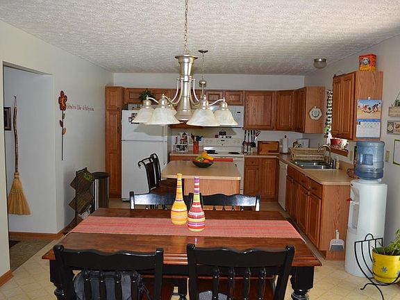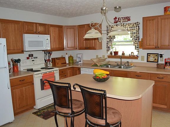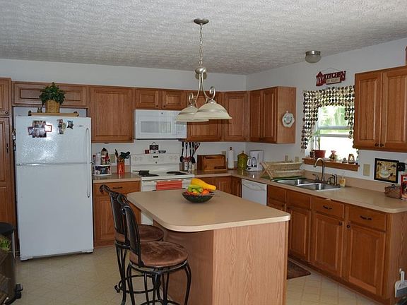 Open Concept Two Story located on partially wooded park like setting. 17x21 Living Room with Vaulted Two Story Ceiling, Wood Floors, and Wood Burning Fireplace, Open Two Story Foyer, 12x23 Eat In kitchen is open to the living room, Center Island, and lots of storage, Convenient 1st floor laundry room, 14x19 Master Bedroom with oversized walk in closet, open hallway over looking the foyer and living room, full basement with poured walls-with potential to finish, 2 car attached garage, two storage sheds, tranquil rear yard with mature woods. Enjoy the view from the covered front porch or covered rear deck.