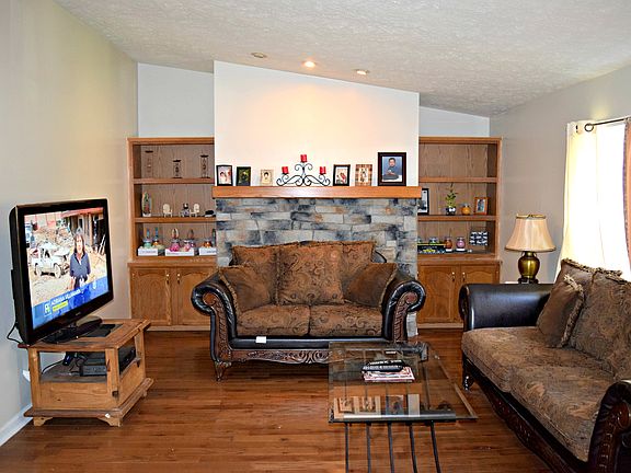 This home is private. It has a full wooded back yard with a pond behind. It is very peaceful and beautiful, especially in the fall. The home has lots of natural light with the skylights in the ceiling. It has a master bathroom with a jetted tub and separate shower. The fire place is beautiful with stone. This home is perfect if you're looking for a peaceful nice sized home.