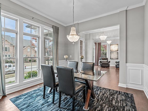 This brick beauty with stone accents and pergola detail greets you with lovely French doors and a columned, covered front porch. Engineered wood floors, detailed moldings, large banks of windows, and a neutral color palette grace the downstairs and draw you seamlessly into the elegant formal living room and wainscot wrapped dining spaces. Casual spaces abound in the rear of the home in the spacious family room with gas log fireplace flanked by custom bookcases, and a breakfast nook for cozy gatherings with views of the wooded backyard and screened porch. A dream kitchen features a large center island with plenty of storage and seating for 4, timeless white cabinetry, Stainless Steel appliances, granite countertops, and a gas cooktop. The luxurious owners' suite features a board & batten wall treatment and expansive ensuite showcasing dual sink vanities, large soaking tub, private water closet and walk-in shower flanked by dual walk-in closets. Two more bedrooms with a Jack and Jill bath, laundry room, and another suite complete the 2nd floor. Woodcreek is a highly sought after neighborhood with resort style amenities: 7 lane pool, lazy river, spiral slide, splash pad, basketball and tennis courts, playground, clubhouse, and fitness center. Prime location situated between Apex and Holly Springs Amenities, NC-540 is 1.5 miles away for easy commutes, and close to shopping centers, grocery stores, restaurants, the movie theatre and Bass Lake Park.