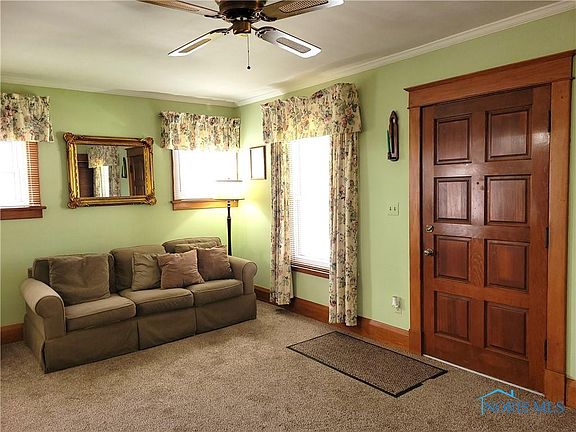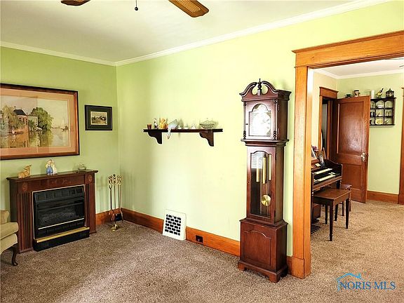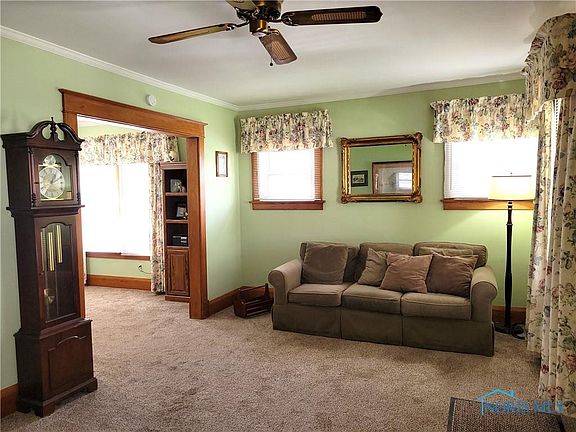 Charming well-maintained home with lots of character. This wonderful home offers large formal living room with beautiful wide wood trim, crown molding, ceiling fan and gas fireplace. Formal dining room also has nice wide wood trim with crown molding. Kitchen offers beautiful oak cabinets with stove, refrigerator and microwave included. Addition added several years back extended the bedroom and added the very nice, enclosed patio with high ceilings. Extra deep lot and deep 1.5 car garage. Replacement windows and newer water heater.