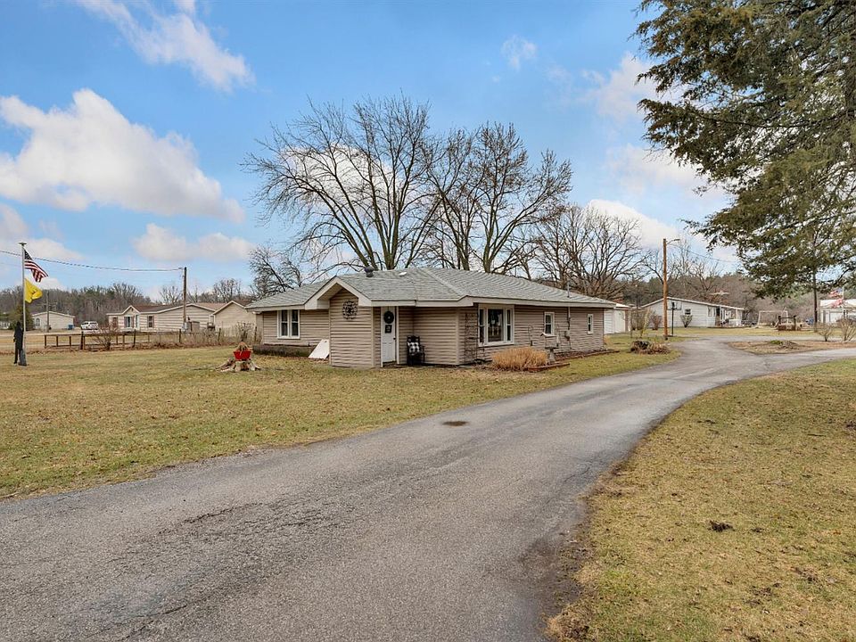 Welcome to this Charming Ranch! This home features 3 bedrooms and 1 bath with over1,600 Sq ft of living space! In 2019 this home was updated with new drywall, carpet (professionally cleaned in 2022), fresh paint on the interior, exterior and kitchen cabinets. New storm door, new backdoor and frame, and a composite deck off the back! The Septic tank was pumped in 2020 and a new water heater was installed in 2021. This open concept kitchen/living space is great for entertaining as well as the 24X36 Pole Barn! This one is a must see! Schedule your showing today!