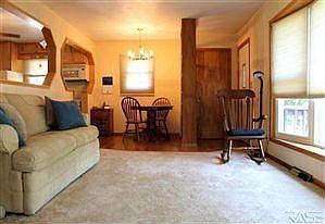 Peaceful setting for this impeccably maintained ranch home that boasts a MASSIVE GARAGE! Perfect for either the car enthusiast or woodworker, the 22X46 garage is currently set up with an air conditioned shop in the back portion. Beautifully remodeled kitchen has birch cabinets, breakfast bar & wood laminate floors that stretch in to the dining area. It is also open to the living room that offers plenty of natural light due to the big window that faces the street. 3 main floor bedrooms, 2 with double closets & the cozy 3rd would make a great office or nursery. New carpet in the lower level family room & in the 2 additional rooms that could each be bedrooms with the installation of a few egress windows. The HUGE 15,000 sq. ft. lot is kept lush all summer with water from the still active well and offers plenty of living space with a paver patio & fire pit, additional covered patio off the garage, garden area & yard shed. Updates: house shingles, vinyl siding, windows & furnace.