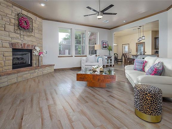 LARGE LOT OVER 1/3 ACRE - WEST NORMAN - TRUMAN/WHITTIER SCHOOLS - COMMUNITY LAKE & PARK - LARGE BALCONY OVERLOOKING YARD. Located at the end of a quiet street with no through traffic. Over-sized backyard, storm shelter, & beautiful kitchen! 2 living areas includes upstairs game room OR use the entire upstairs as a suite - complete with large bedroom, full bath, closet, & living space (the game room). Downstairs study with closet and a full bath nearby if you need 4 bedrooms. Wood flooring added recently in living room & master suite. Master bath: granite, dual vanities, make-up table, & nice vanity storage. AWESOME kitchen with gas cook-top, roll-outs in several lower cabinets, under-cabinet lighting, pantry, & stunning exotic granite on kitchen island. EAST FACING covered back patio makes for great evenings outdoors, out of the sun. STORM SHELTER in 3 CAR TANDEM GARAGE. Home has TANK-LESS WATER HEATER! Recent 2020 updates include new overhead garage door and downstairs furnace.