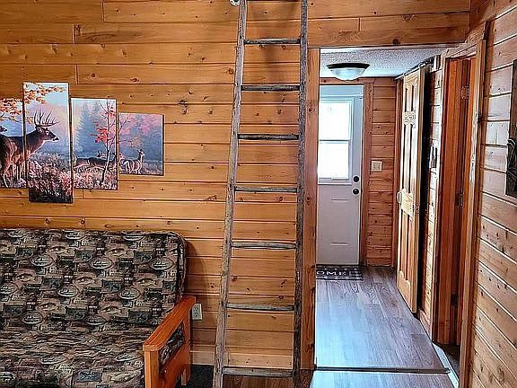 Great cabin overlooking Pine Lake near Gonvick, MN. This cozy cabin is all you need to get away from the hustle and bustle of everyday life. Use it when you want and VRBO when you can't, either way, this is a great property. The cabin features 2 bedrooms and 2 separate loft areas big enough for the kids to sleep. For heat, there is a stone wood burning fireplace, electric heaters in every room and a heat pump/ac unit. Out back is a nice patio for grilling and a storage shed for all your lawn care and use the over-sized garage for your water toys.
