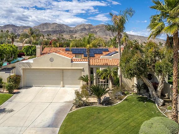 Welcome to Monterra Palm Desert. This home has 3 bedrooms, 2.5 baths in the main house and a 1 bedroom 1 bath detached casita. There is a spacious kitchen and breakfast nook, a living room with a wet bar, family room with a fireplace. Main bedroom has high ceilings and a fireplace. Large laundry room, 3 car attached garage with epoxy flooring. One of the largest lots in the community with 16,552 sqft. Mature landscaping, oversize pool and spa, mountain views and solar. Guard gated community with low hoa fees of $315/mo,