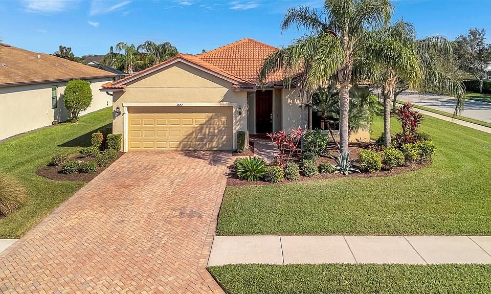 Step into the perfect home nestled on a beautifully landscaped corner lot, this 4-bedroom, 2-bath gem offers a truly welcoming atmosphere from the moment you pull up. With its meticulously maintained exterior, paver driveway, and a fenced backyard that overlooks a serene preserve feel right at home. As you enter through the large foyer, you're greeted with recessed lighting, crown molding, and 18-inch tile laid diagonally, creating a bright and open feel throughout. The spacious, open-concept living area flows seamlessly into a gourmet kitchen featuring stainless steel appliances, a huge island, granite countertops, under-cabinet lighting, and ample pantry space. Plus, with oversized upper cabinets and slide-out drawers in the lower cabinets, storage and organization are a breeze. The master suite is a true retreat, offering a generous walk-in closet and a luxurious master bath with granite counters, dual sinks, and a huge walk-in shower. The 2nd and 3rd bedrooms are separated by a linen closet and share a large bath with granite countertops and dual sinks. The 4th bedroom at the entrance of the home offers flexibility ideal for a den, office, or guest room. The laundry room features cabinets, utility sink and included washer/dryer for added convenience. Relax and unwind in the screened lanai, complete with pavers and stunning views of the pond, where you can watch birds and wildlife roam freely. The oversized 2-car garage includes a workbench, wood storage cabinets, and a utility sink, making it as functional as it is spacious. This home is hurricane-ready with impact glass throughout (no need for shutters), and is designed to be handicap accessible, with easy-maintenance tile in the main areas and wood laminate floors in the bedrooms. Plus, the home boasts a NEW Trane A/C unit installed in July 2023 for added peace of mind. Set in a highly sought-after neighborhood with low HOA fees, residents enjoy access to a playground, basketball court, and close proximity to Braden River High School and other top-rated schools. A dog park is conveniently located just outside the neighborhood. Shopping, dining, and entertainment are just minutes away at the UTC Mall area, and with I-75 nearby, you'll have quick access to all that Sarasota and the surrounding areas have to offer, including the stunning Gulf Coast beaches of Siesta Key, Lido Beach, and Anna Maria Island. Start the new year right in a home that combines luxury, comfort, and convenience. Don't miss your chance to make this stunning property yours!