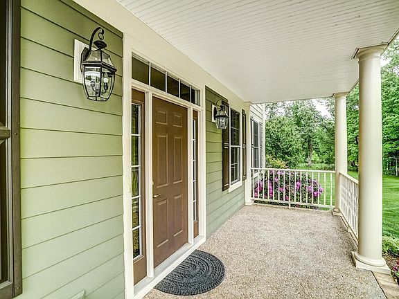 Custom home on 4 acres of level yard and mature woods. Genuine hardwood flooring, gorgeous mouldings and detailed craftsmanship make this one of a kind. Airy 9' ceilings on main with cathedral ceiling in first floor primary suite. This suite is privately tucked away and features its own deck and adjoining office. Living/music room and dining room. The gourmet kitchen and family room form one beautiful space. The kitchen has abundant granite counters, gas cooking, bar sink and and handsome cherry cabinetry. A stone fireplace with gas logs is in the family room. Both have a wall of windows for great light and views. Dine alfresco on the elevated deck. Laundry/mud room off the kitchen and garage. Upper level sitting area opens to a covered porch looking out to your yard and woods. Two of the three bedrooms upstairs have walk-in closets and attached full baths. One other bedroom uses a full hall bath. A huge walk-in attic provides storage and can be finished. Downstairs is a huge walk-out rec room with good natural light as it opens to the patio and fenced backyard. 5th bedroom and full bath plus loads of storage are here, too. Beautiful hardscape and mature plantings surround this special property. Priced wellbelow county assessment.