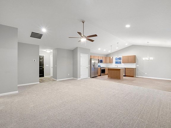 Welcome to this great ranch style home in Majestic Pointe! This new build by Majestic Homes offers 3BR/2BA, a great open floor plan, and an abundance of natural light. Inside you can enjoy a lovely front bonus room which can be used as an office or den. Continue into the living room which features a vaulted ceiling and is open to the dining room for easy entertaining. The chef of the home will appreciate a fabulous kitchen with contemporary custom cabinetry with quartz counter tops throughout, a stainless steel appliance package, nice contrasting tile backsplash, and great counter space to work with. There is also a small breakfast bar to stand and eat a snack or your morning cup of coffee. Natural light shining through all of the windows in the home have the neutral paint tones standing out proudly. Make your way into the master bedroom which offers a great place to relax at the end of the day. It has its own full bath with a double sink vanity, a walk-in shower with seating, and a spacious walk-in closet. Two more generous sized bedrooms are just down the way along with another full bath for the rest of your family and friends. A separate laundry room and access to the attached garage complete the inside of this home. Travel out to the backyard off of the great room and grill out on the back patio. A large backyard makes for the perfect place for your kids and pets to run and play while you are cooking and entertaining. This open space is a blank slate and ready for you to make it your own! The oversized 2 car garage is perfect for additional storage along with your vehicles. The up and coming Majestic Pointe neighborhood is within the sought after NWAC school district and is only a few minutes drive to shopping, restaurants, entertainment, and more! you will not be disappointed in making this brand new build your new family hoe today!