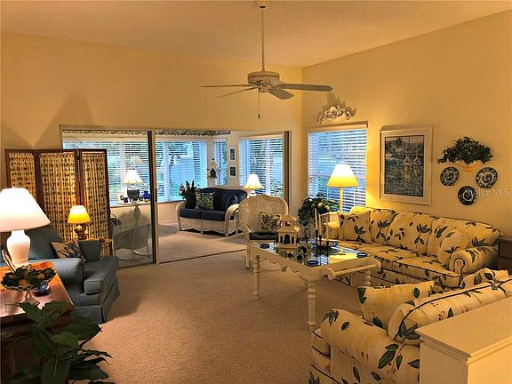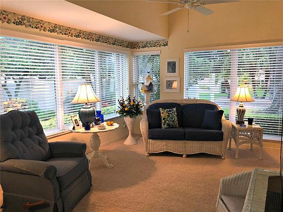 Don't wait to see this beautiful Highland Lakes stunner! This is the desirable 2 bedroom, 2 bath split plan Coquina II floor plan makes this home light and bright with all the windows you could ever want. The tile roof was replaced in 2018 and there are hurricane shutters for all windows and the front door. As you enter the home you are welcomed into the formal living and dining room with 10 foot ceilings and paver patio. The kitchen boasts light wood cabinetry with pull out drawers, pantry, neutral Corian counter tops,dining area,a built-in desk and windows that run the length of the kitchen to let natural light in. When you aren't in the kitchen, you will find yourself enjoying the enclosed Florida room that brings the outdoors in without all the heat and humidity. From the Florida room, you can access the 15x11 Master bedroom with its 10 ft ceilings and the Master Bath that has dual sink vanity, beautiful glass enclosed Corian lined shower(no grout lines) with grab bar and built in bench. The second bedroom is oversized at 15x11 and the bathroom is spacious. You can easily provide guests that private ensuite feel by closing the pocket door to the main living area. Another great feature is that you are directly across the street from the clubhouse and pool. What are you waiting for?