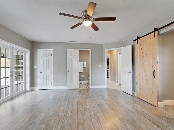 - Interior Features: Ceiling Fans(s), Master Bedroom Downstairs, Solid Surface Counters