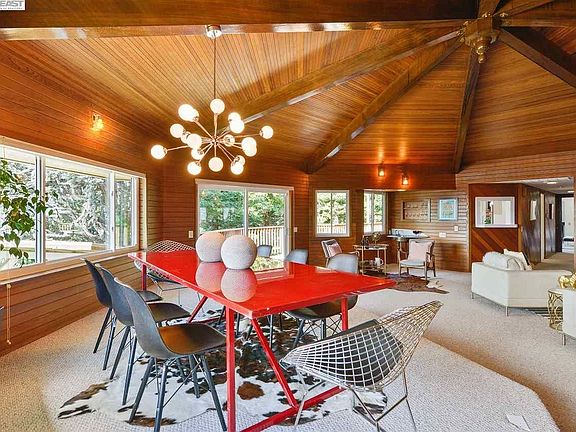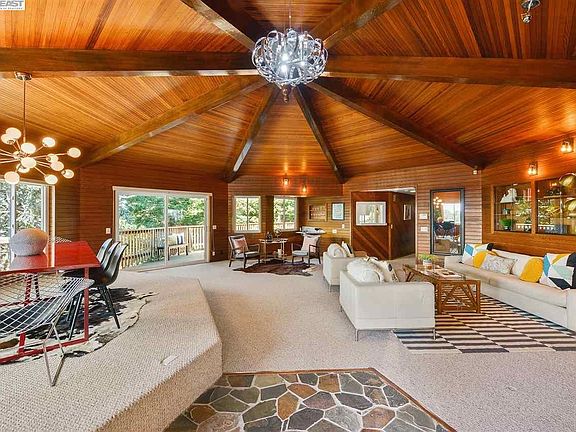Enjoy maximum privacy in this gorgeous house that is elevated off the street and surrounded by nature with a private and gated driveway. This home boasts soaring ceilings and unique custom architecture with spacious open living/dining space and a spacious master suite. Fully remodeled two large bathrooms (with a large shower and jetted tub) and updated kitchen with two beautiful copper vent hoods. Large newly built private deck perfect for entertaining, relaxing with friends and family, and enjoying nature. Recent updates also include exterior paint, double pane windows, and a new heater. The front of the house is landscaped with drought resistant plants and two planter boxes were also added to the backyard for seasonal gardening. Additional home features: Two large brick fireplaces (one in the living room and one in the master bedroom), large master walk-in closet, electric car charger, spacious shed for storage or workshop space, lots of storage cabinets outside, Simply Safe alarm system, and a covered parking port. It is also close to charming local downtown and shopping, and provides easy highway access (highways 580 and 13).