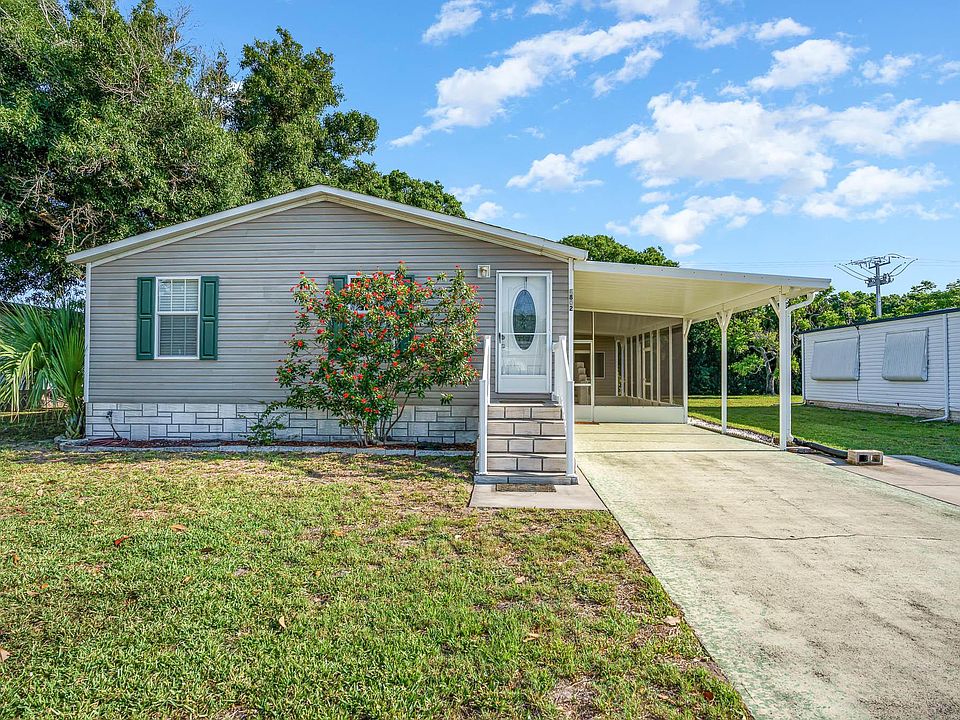 CONTACT Denise Contella - 321-693-5461, denisecontella@gmail.com - This could be your PERFECT retirement home. You own the land--no lot rent. Newer 2005 doublewide that's been beautifully updated. Roof and AC from 2016. Eat-in kitchen with granite countertops, stainless appliances, and gorgeous hickory cabinets with soft close drawers and cabinet doors. Large family room and living room with laminate flooring. Spacious master with 2 sinks, tub and separate shower, and a walk-in closet. Indoor laundry room off kitchen. Large screened porch to enjoy the outdoors. Double-insulated windows. Back yard has lots of trees and shrubbery. Storage shed with window to keep all your toys. 55+ community with pool, shuffleboard, clubhouse and even storage for your boat or RV. Voluntary HOA dues are $20/year; community monthly maint fee of $102. Pristine condition! CONTACT Denise Contella, 321-693-5461, denisecontella@gmailcom