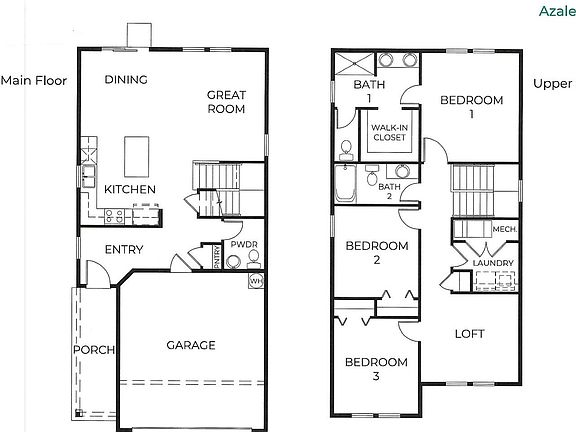 The Azalea plan has an open concept layout with kitchen open to living space! Kitchen has large quartz island, pantry, and gas range. 3 bdrms+ loft, 2.5 baths, laminate flooring thru-out main areas. DEAKO plug and play switches, and more! Hi-efficiency furnace, hybrid heat pump water heater and Smart Home Package included. Pre-wired for solar! Est November completion! Includes AC, Fence, GDO & Blinds!