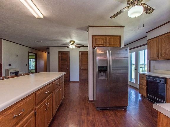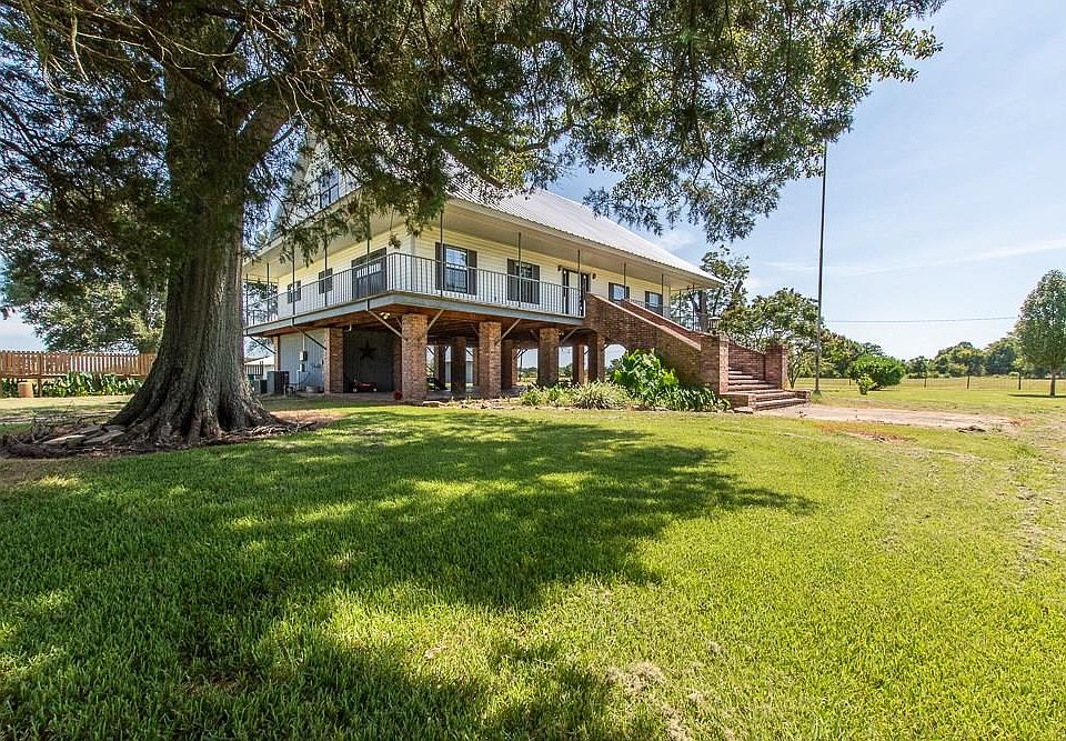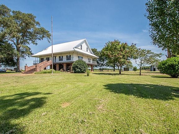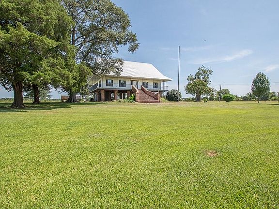 Mini-Country Estate;5 acres,crossed fenced,barn and separate workshop-both have electricity. Ready for your horses and/or other other livestock. The very unique home sits high off the ground, is supported by massive brick columns on a concrete slab. The structure of this home is iron beams. Expansive brick steps lead up to the front entrance and the concrete porch completely surrounding the home for the owners enjoyment of sunrises, sunsets and just plain relaxation. Lots of inside space too. Main level is a large eat-in kitchen with an open view of den, dining room and another large room off the front foyer that can be a living room or 4th bedroom. A full bath is conveniently located to this room, the kitchen and an enormous laundry room. Upstairs level has three large bedrooms and two full baths. Ground slab is the carport, half bath, and a storage room that could easily provide space for possible addition of an elevator. Plenty of area here for outside entertainment.