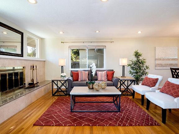 This beautiful ranch style home was designed to open floor plan between the kitchen, dining room with glass chandelier, family room, living room, and added sunroom with skylight and large glass windows observing the newly landscaped large backyard and organic trees. The Master room has its own bathroom. There is a separate guest bathroom in the hallway. The second bedroom also has a remodeled bathroom. Many of the features of the home include 2 cozy fireplaces, beautiful hardwood floors, new interior paint throughout the house, dual pane windows, recessed lighting throughout the house, high end stainless appliances, modern granite countertops with an island, beautiful wooden cabinets and pantry. This home is very close to schools, freeways and BART. Convenient to shopping and restaurants.