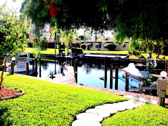 This condo has it all, Deeded Boat Slip, Dock with Seating Area, Direct Access and minutes out to the River, Low Condo Fees, and very convenient to Cape Coral Parkway and Downtown. Fully and tastefully furnished including linens and kitchen necessities, and a flat screen TV in every room! Everything conveys with the property! Laundry room down the hall. Other amenities include Community Pool and impeccably kept grounds, water and basic cable. The unit is ground floor all ready to go for either a rental or to make your own.