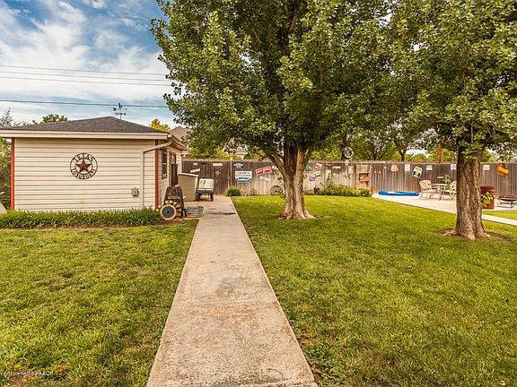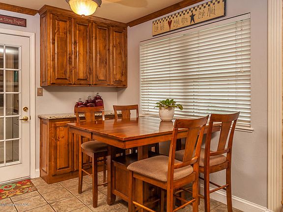 This home features hand-scraped hard wood floors & corner fireplace. Great built-in buffet & cabinets in dining. Newer stainless appliances, granite, knotty alder cabinets in kitchen. Hall bathroom features granite countertop and under-mount sink/bronzed fixtures. The pergola & 2 back patios are great for entertaining. Two storage buildings, one with H/AC. Dog Run. Sprinklers. Wired for security.