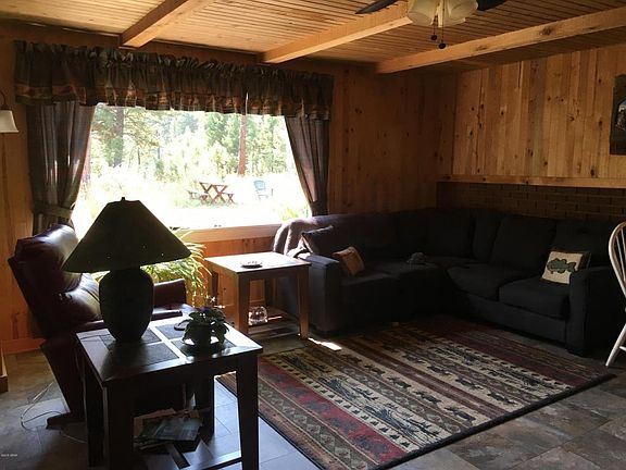Nothing to do but relax and throw a line in the creek! RARE OPPORTUNITY on Belt Creek with nicely finished cabin, electric, propane (tank owned), well, septic, wood fireplace with insert and adorable new addition with a propane stove. One car garage, very cute stone house nicely finished with small wood stove (makes a great yoga room) and a spring+pump for watering yard. New roof/soffits. Hot Water on Demand. Full Bath plus good outhouse. This is a well thought-out property, set back from highway. Large trees and frequent deer. Close to ski hill!