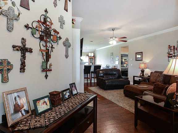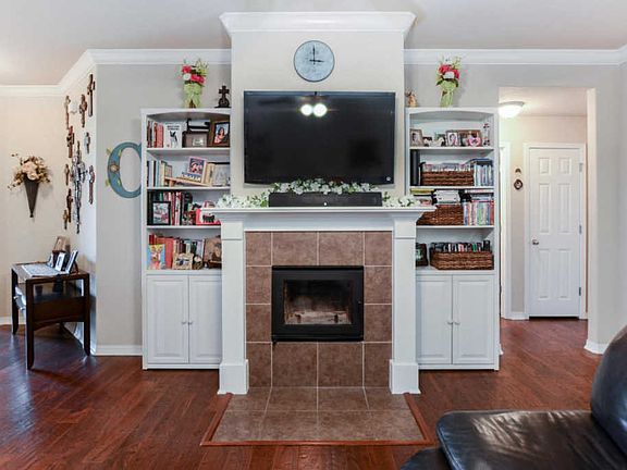 Great 4 bdrm open floor plan. Hardwood floors in the living room with a wood burning fireplace. Huge master bedroom. Master closet is also a storm shelter. Fantastic kitchen with granite and pantry. Covered patio in secluded back yard. Yard is fenced.